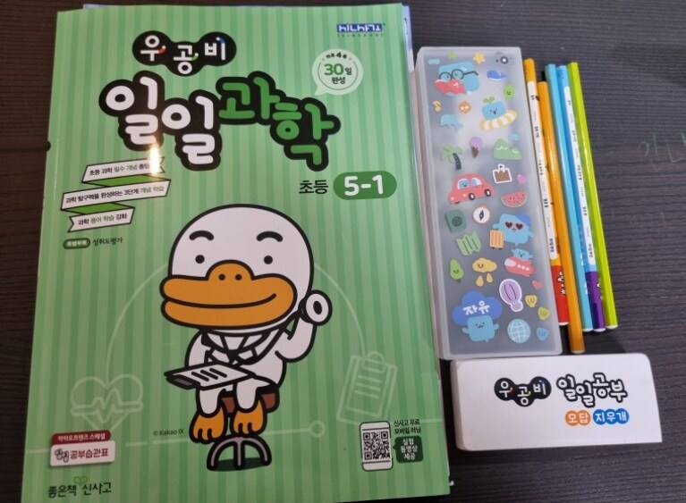 우공비 일일과학 공부습관표가 있어서 뒤에 일차별로 스티커를 활용해서