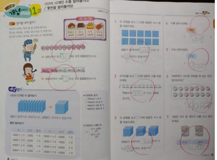 틀린문제도 스스로 고치면서 모르는 문제는 엄마와 함게 이야기 하면서 풀어봅니다.