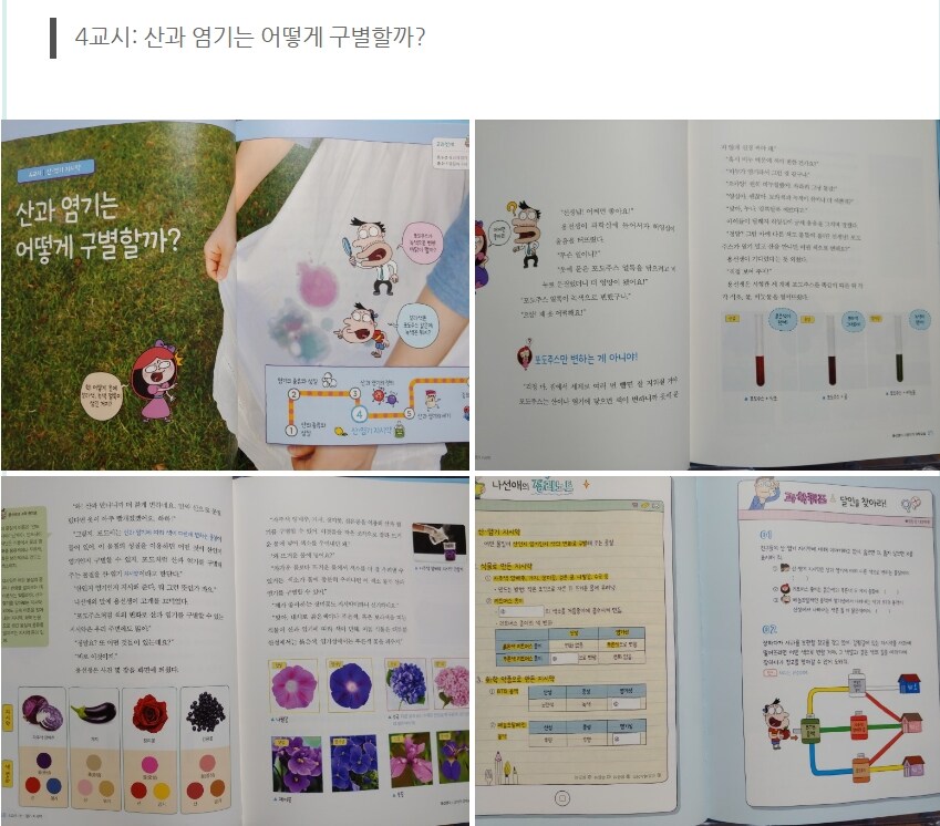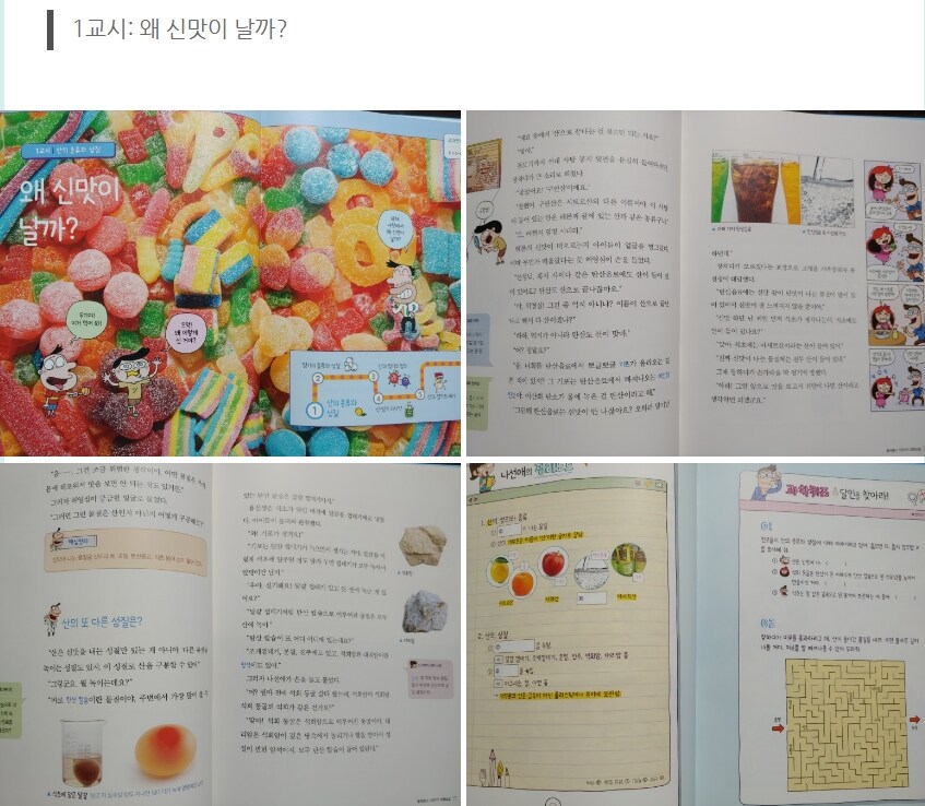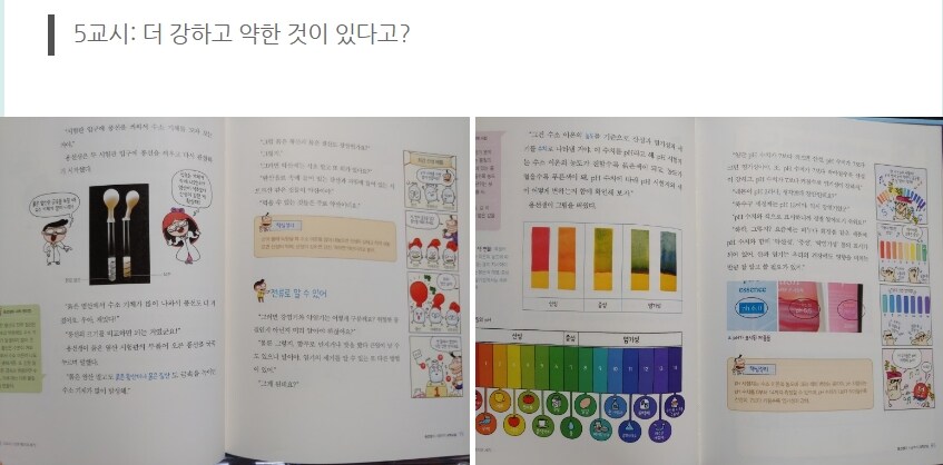 1교시 <왜 신맛이 날까?> 책은 초등학교 5학년 2학기 5단원 산과염기단원과 연계되어 있는 내용이랍니다.