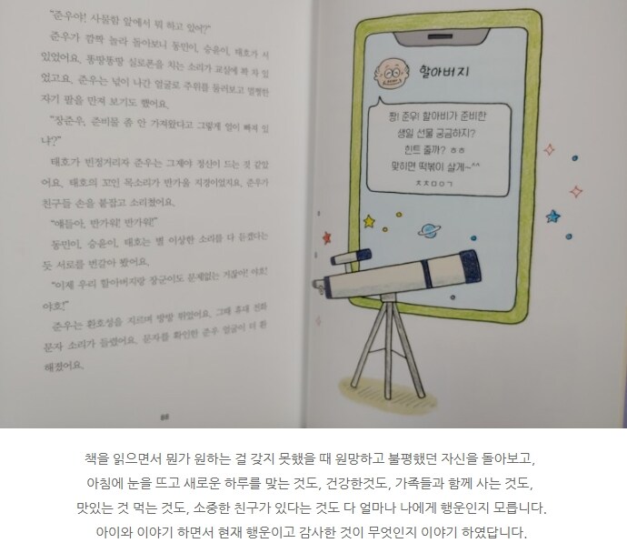 그전까지는 과학을 정말 싫어해서 과학이야기는 집에서 한적이 없었는데 용선생 과학교실 읽으면서 용선생과학교실에서 읽었던 내용이라면서 이야기하는 모습을 보니 과학을 더 싫어하기 전에 용선생 과학교실을 만나길 정말 잘했다는 생각이 들었답니다^^