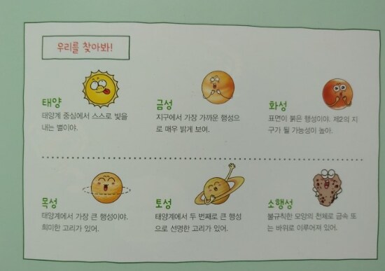 이번 책의 중요한 단어들은 "태양, 금성, 화성, 목성, 토성, 소행성" 이네요.