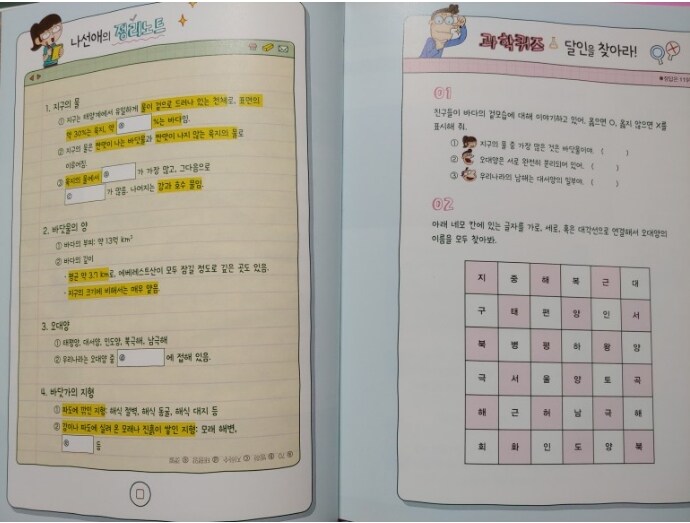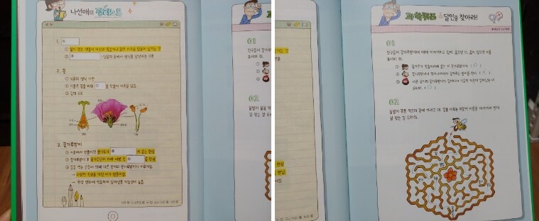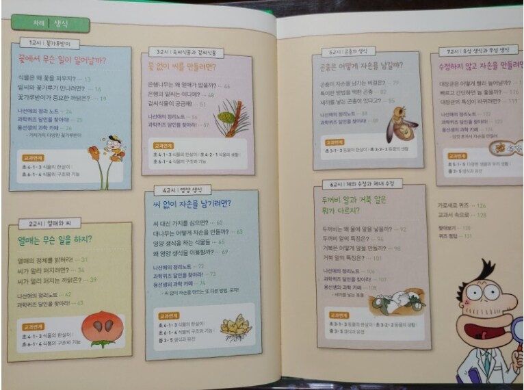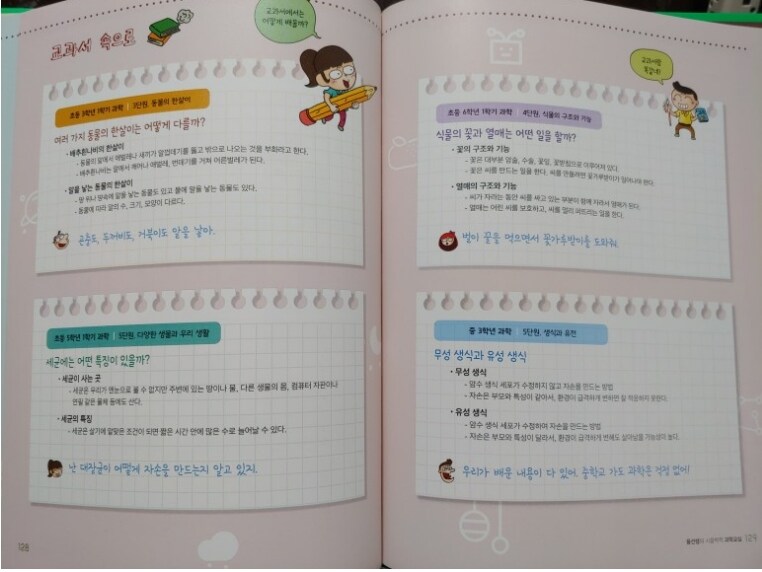 물리영역, 호흡과 순환, 생물의 적응, 소화와 배설과 같은 생명과학 분야로 나누어져 있어서물리와 화학, 지구과학과 생명공학까지 과학의 전반적인 분야에 대해서 학습할 수 있어서너무 좋더라구요.