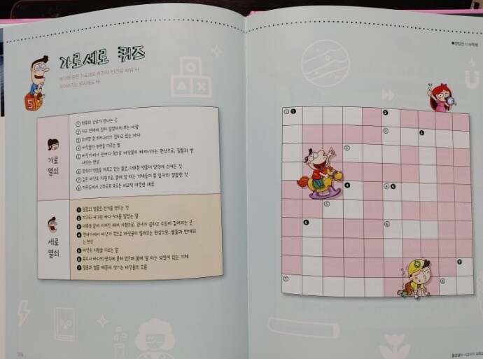 가로와 세로 열쇠에 각 번호에 쓰여있는 설명을 읽고 단어를 적으면서 빈칸을 채워봅니다.