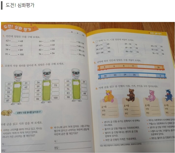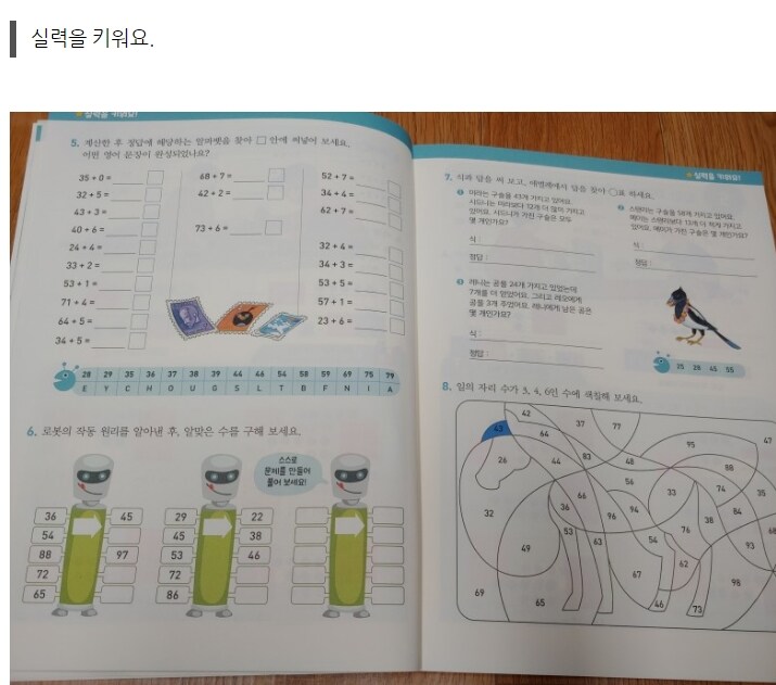 다음장의 "실력을 키워요" 에서는 한단계 업그레이 되어 좀 더 응용된 문제를 통해 배운개념을