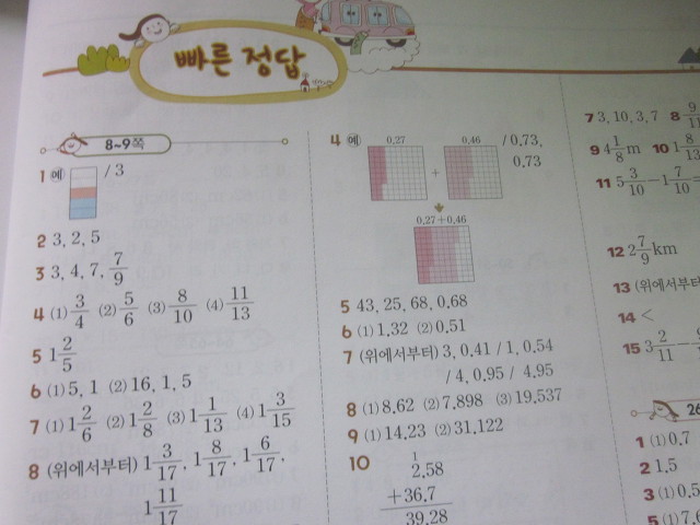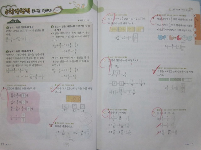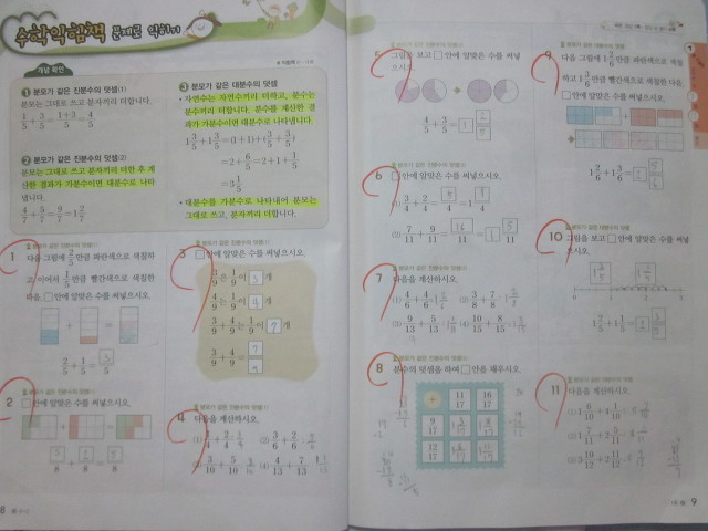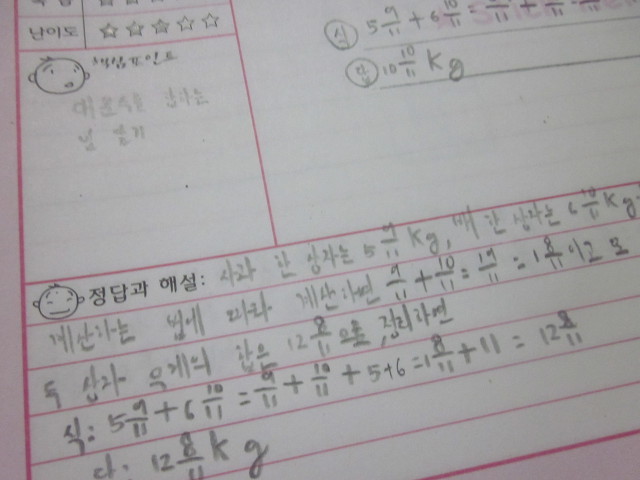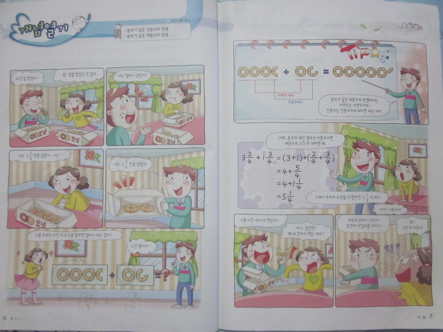 우리 아이, 만화 속 그림으로 된 덧셈으로 자연수는 자연수끼리, 진분수는 진분수끼리하는