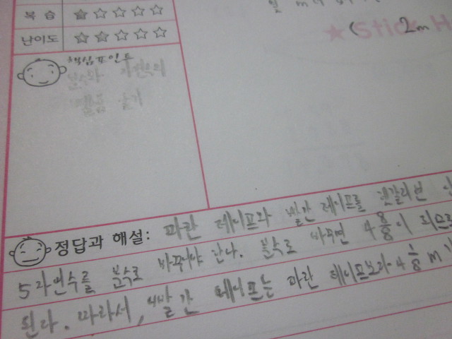 앞의 만화에 나온 그림을 보면서 개념을 바로잡아 주니, 쉽게 이해가 되었는지 스스로 오답 노트까지 작성해주었어요.