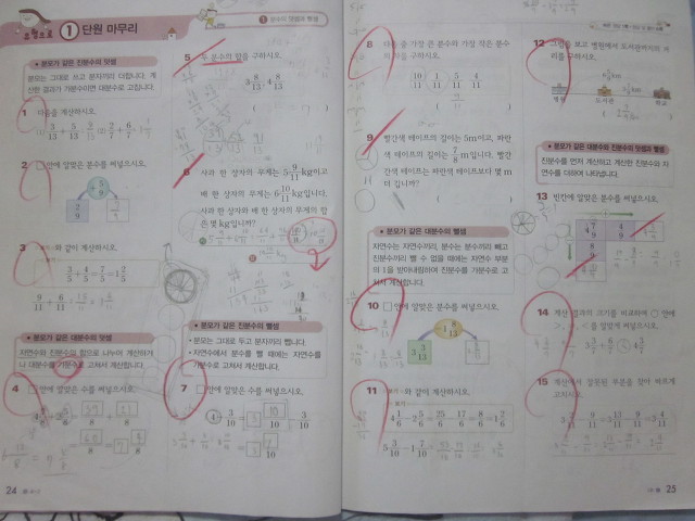 1단원 분수의 덧셈과 뺄셈 부분 한단원을 소개할게요.