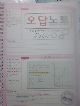 예전에 사다놓고 안 쓰던 오답노트인데, 큐브 수학을 계기로 쓰게 되었어요.