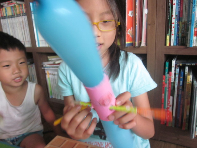 하지만 연필 꽂기에서 분홍색 풍선이 터졌네요.
