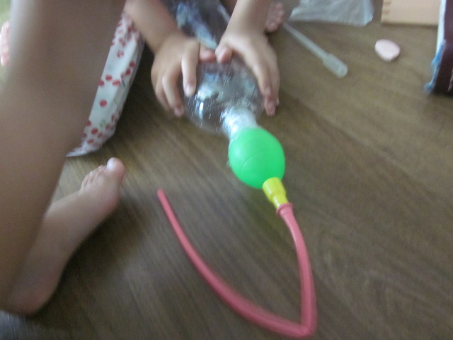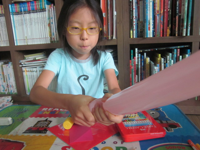 큰 아이 스스로 패트병에 구멍을 뚫어서 공기가 들어오게 해야 한다는 사실도 알았고