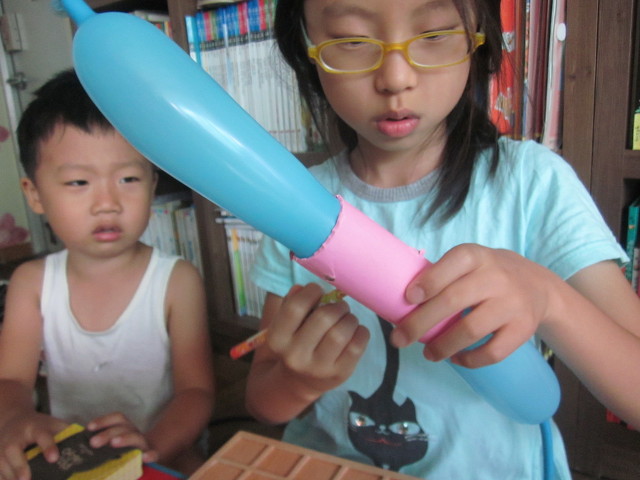 큰 아이와 함께 풍선 마술을 해보기로 했어요.
