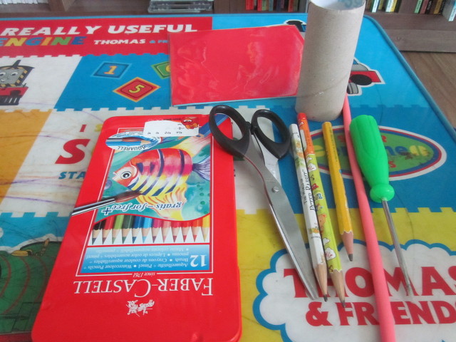 꼭 필요한 휴지심과 풍선, 연필, 송곳을 비롯해 꾸미기 재료를 준비합니다.