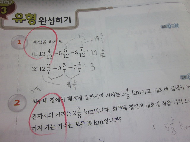 이 부분은 아쉽게도 정수와 분수의 뺄셈 부분에서 틀렸더군요.
