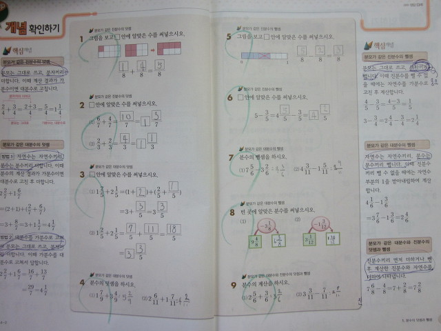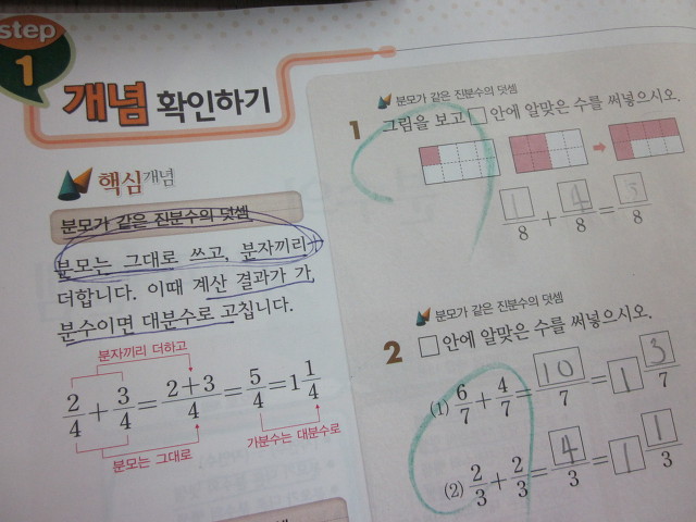 분수의 덧셈 부분의 기본 개념을 그림이나 구체물로 개념을 철저히 익힌 친구들에게 맞게끔