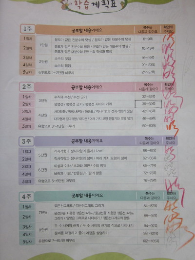 학교 수업 진도에 맞춰 정리를 하다보면 단원평가 및 중간고사나 기말고사 준비가 저절로 될 것 같더군요.