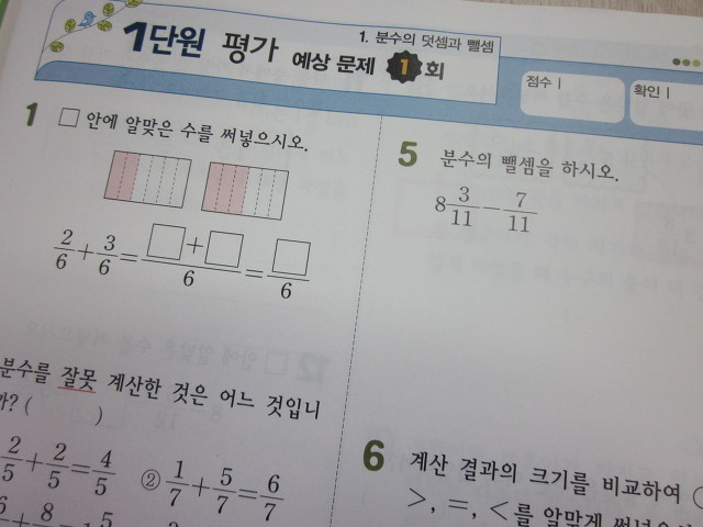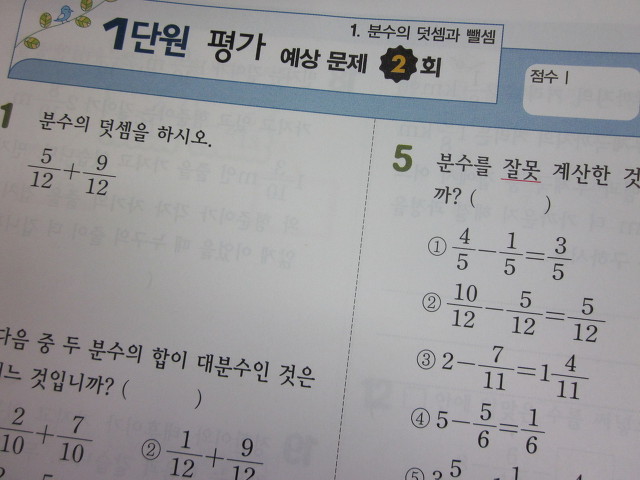 단원평가에서도 계산 실수를 한 것빼곤 아주 잘 풀어주었어요.