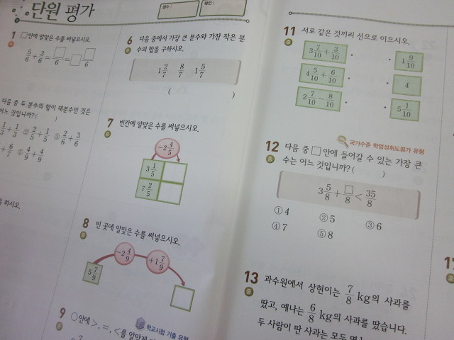 단원평가에는 학교시험 기출문제라던가 국가 수준 학업성취도평가 유형 등의 문제가 있어서