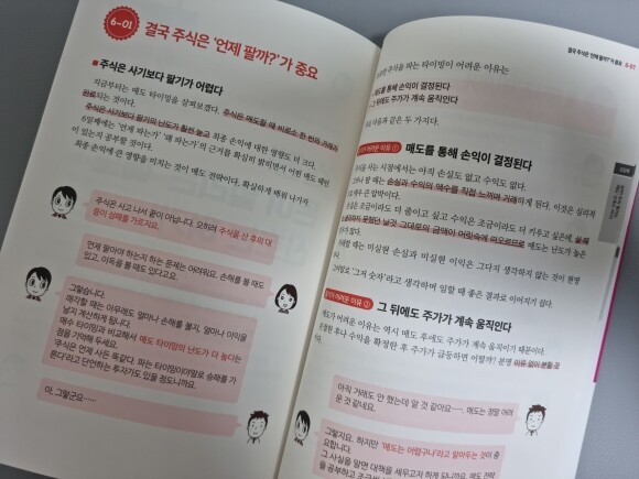 그동안 주식차트 공부는 어려운 것이라고 생각을 했었는데요. 이 책을 보면서 주식차트도 쉽게 기초를 배울 수 있구나라는 생각이 들었습니다. 그리고 정말 책이 재미있게 구성되어 있어서 책을 읽는 내내 지겹다거나 더 이상 어려워서 못 보겠다는 생각이 들지 않아서 흥미롭게 읽을 수 있었던 거 같습니다.