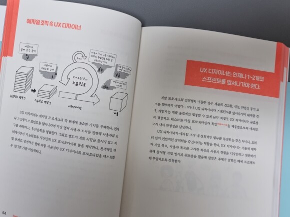 그렇기 때문에 매번 애자일을 한다는 회사에 다니시는 분들에게 설명을 듣거나, 애자일에 관해서 설명된 책을 보면서 애자일이 무엇인지 상상을 해보고는 했습니다. 그럼에도 불구하고 개론적으로 애자일을 잘 설명해 놓은 책이나, 설명하시는 분이 없으셔서 이해하기 힘든 부분이 많이 있었는데요. 이번 <UX 개론> 책에서는 이 애자일이 너무 쉽게 설명되어 있어서 쉽게 알 수가 있었습니다.