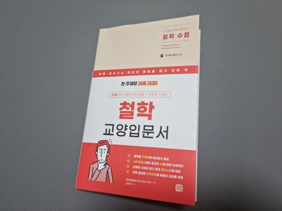 '철학'이란 학문을 중·고등학교 윤리 시간에 배우지 않았다면은 조금 더 친근하게 배울 수 있었지 않을까라는 생각을 '30일 만에 배우는 철학 수첩' 책을 통해서 느꼈습니다. 윤리 시간에 갑작스럽게 등장하는 고대 시대의 철학들은 왜 윤리 시간에 이걸 배우고 있어야 하느냐는 의문이 들었던 거 같습니다. 굳이 내가 이 문제를 안다고 세상을 사는데 더 도움이 될까라고 생각했던 거 같습니다.