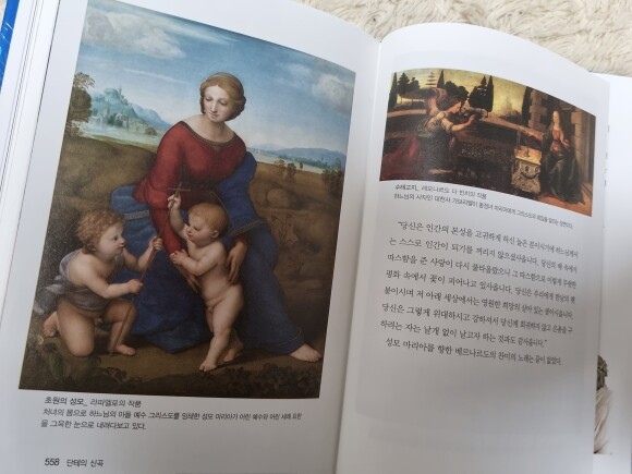 또한 명화가 있음으로 좋았던 것은 각각의 작가들이 전달하려고 하는 느낌이 그대로 전달되어서 책을 읽는 동안에 책에서 전달하는 메시지와 함께 더 풍부한 감정을 전달하는 느낌이었습니다. 그리고 책의 내용을 읽지 않고 각 페이지마다 있는 명화들만을 보는 것만으로 해도 책을 읽는 또 다른 재미를 주는 거 같았습니다.