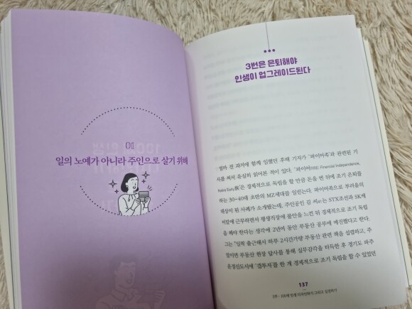저자는 은퇴를 자주 하고 싶다고 이야기를 하는데요. 3번쯤 은퇴했으면 좋겠다고 이야기를 합니다. 냉정하게 얘기하면 100세 시대에서 한 번의 봉급자 생활로는 경제적으로 노후를 편하게 살기 힘들어졌다는 이야기를 하는 것입니다. 설사 재무적으로 잘 준비됐다고 해도 50대에 퇴직해서 30년 넘게 그냥 무위도식하며 살기엔 너무나 긴 여정이 기다리고 있다는 것입니다.