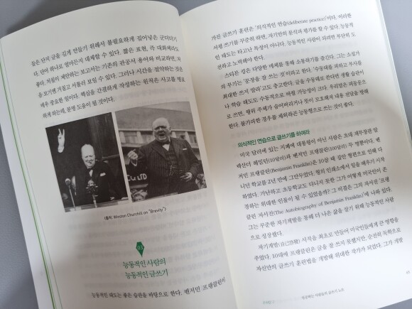 보통 말을 잘하는 사람들을 보면 글도 잘 쓴다는 생각이 들 때가 많은데요. 이는 말하기 연습과 글쓰기 연습은 같다고 이야기하는 저자의 말에서 엿볼 수 있습니다. 책을 보면 위대한 연설가로 꼽히는 처칠도 아무런 준비 없이는 즉흥연설을 할 수 없고, 즉흥 연설처럼 보여도 실제상황처럼 꾸준한 연습이 필요하다는 내용이 있습니다. 말을 잘하는 사람이 글쓰기를 잘하는 것은 그만큼 일상에서 말을 잘하기 위해서 연습을 했거나, 글을 잘 쓰기 위해서 꾸준히 노력하면서 완성도를 높여 나갔다는 것입니다.