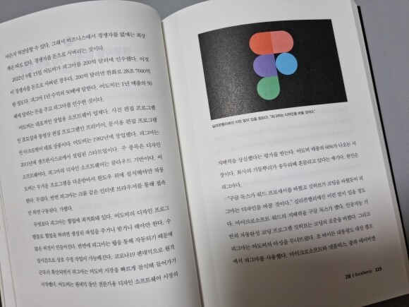 하지만 책에서는 이 인수가 무조건 성공적이라고 이야기는 하지 않습니다. 어도비는 피그마 인수에 성공했지만 승자의 저주에 노출된 상태라는 것입니다. 피그마를 인수해서 경쟁자를 제거하고 시장 지배력을 유지, 강화하는 데는 성공했지만 어도비에도 피그마의 비슷한 어도비XD 프로그램이 있다는 것입니다. 시장 외연이 넓어지지 않으니 당장 매출이나 순익이 드라마틱하게 증가하기도 어렵다는 것입니다.
