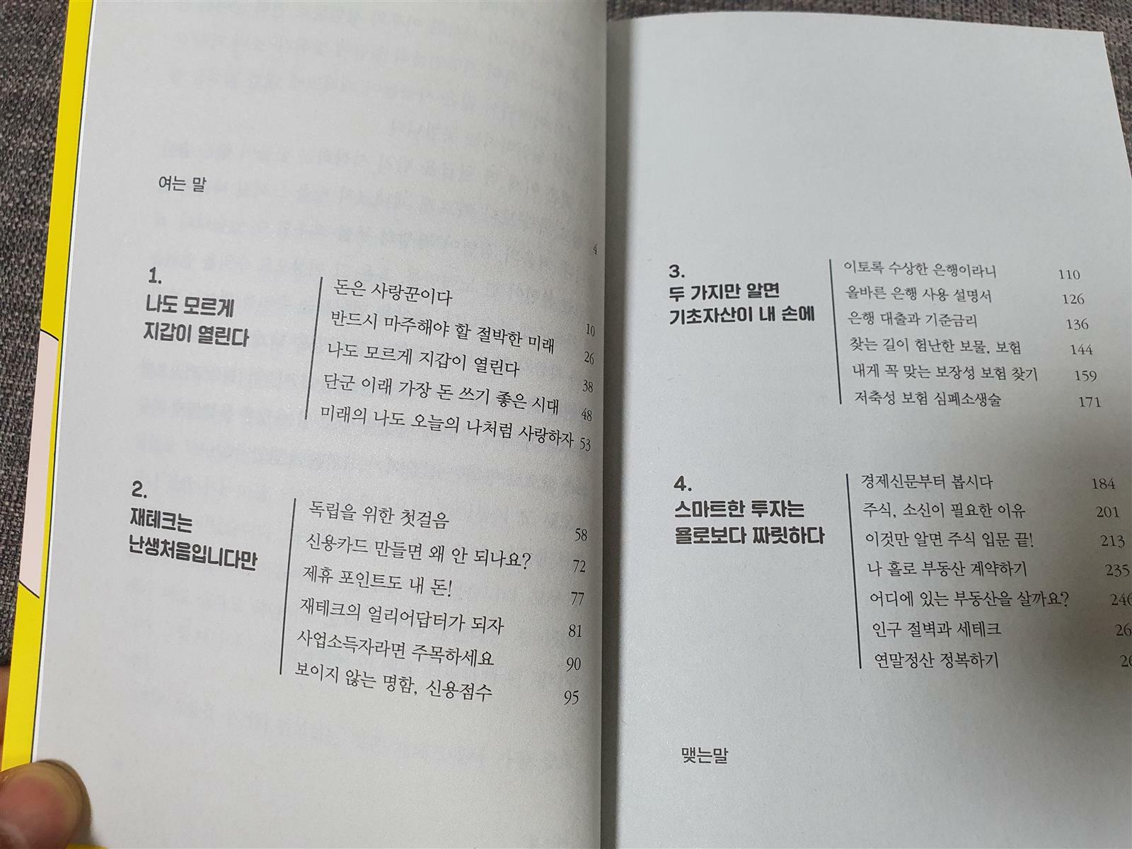 목차를 보았을 때는 차근차근 내용을 따라가면 재테크의 기본은 알 수 있을 듯합니다.