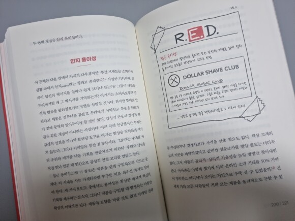 책의 원제가 R.E.D. MARKETING인데 한국어로 번역되면서 '다시 팔리는 것들의 비밀'이라는 한국어 제목으로 번역된 게 조금 아쉬움이 책을 읽으며 느껴졌습니다. R.E.D. MARKETING이 뭐야라는 느낌 때문에 한국어 제목을 하나 만들었다는 생각이 들었는데요. 저자는 이 R.E.D. MARKETING에 관해서 처음부터 끝까지 이야기를 하고 있기 때문에 원제 그대로 되었어도 좋았겠다는 생각이 들었습니다.
