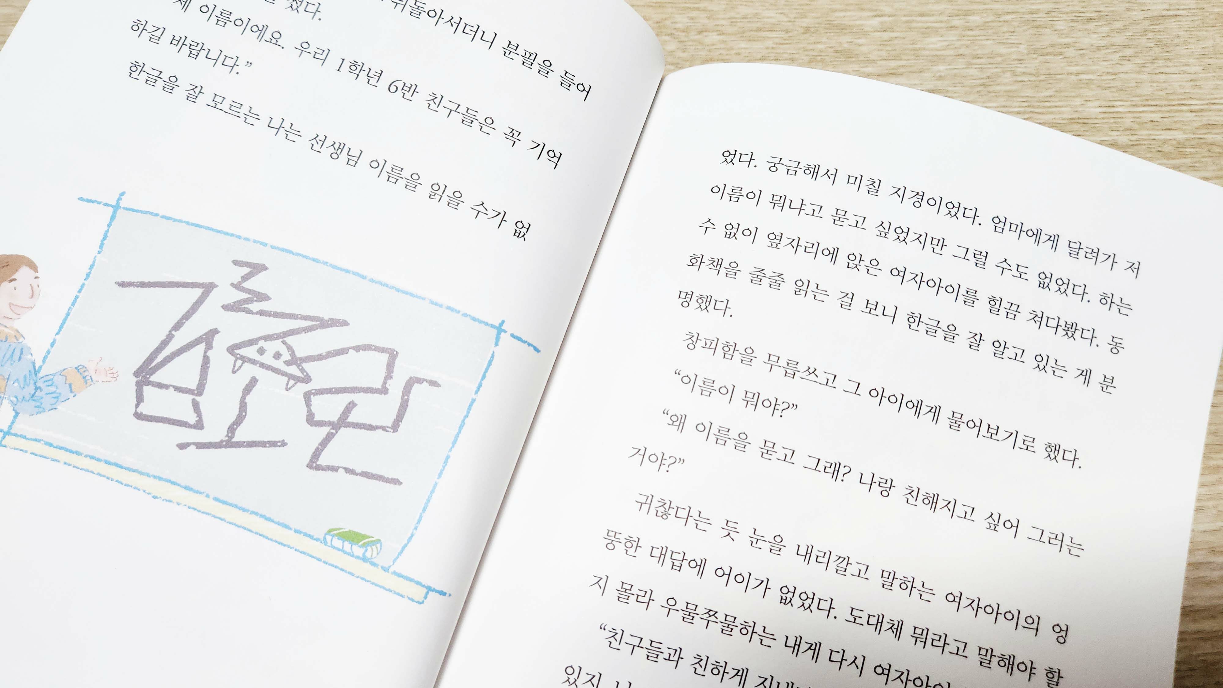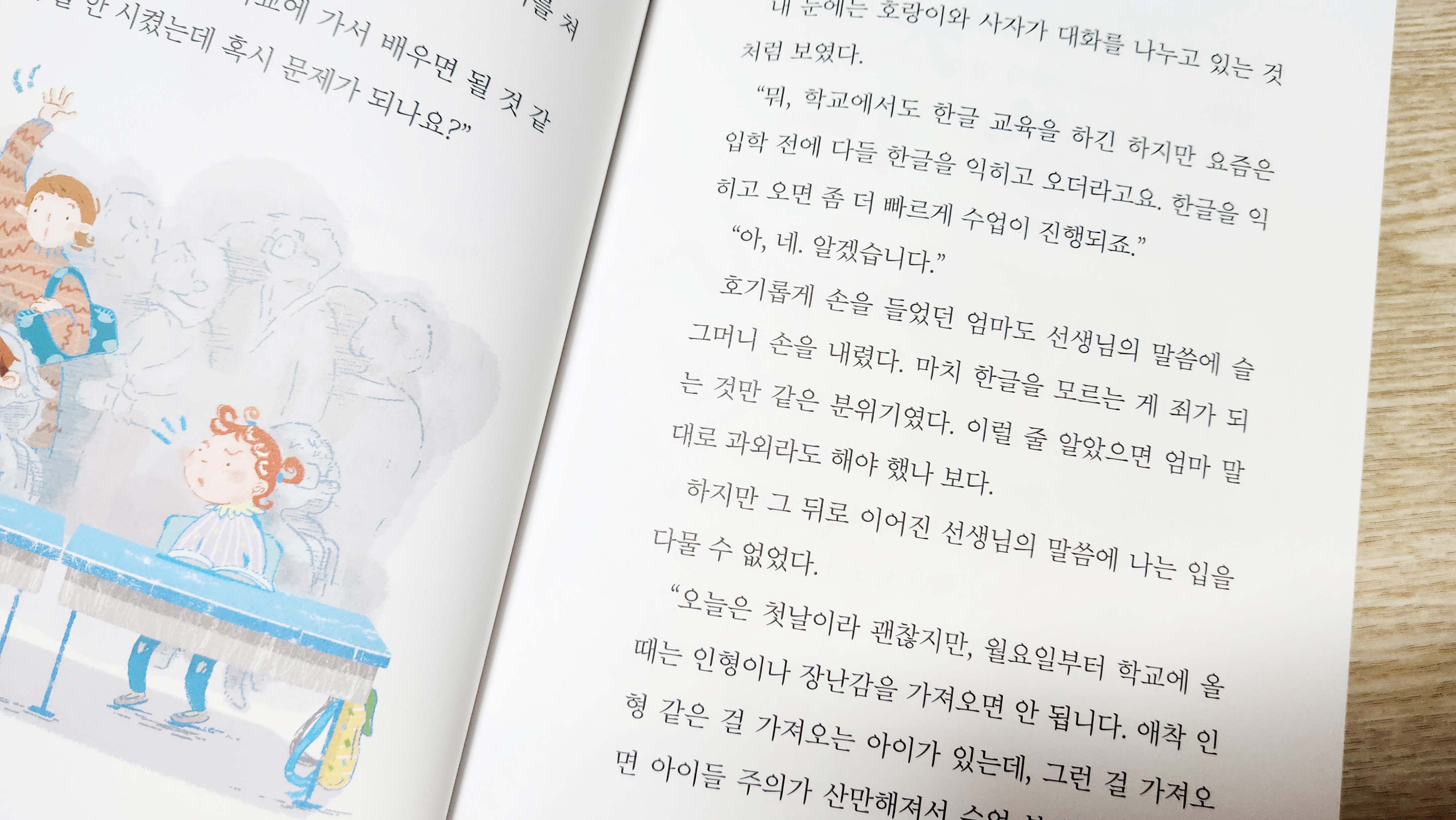 큰 아이가 먼저 책을 읽어보면서 걱정했던 건, 한글을 모르고 학교에 가는 모습 부터 안타까워했어요.