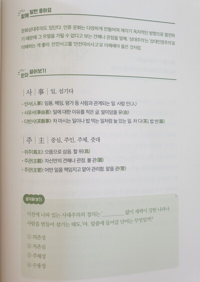 국어뿐만 아니라 수학, 과학,사회, 국사에 관련된 한자 어휘들에 대해서 소개하고 있는데