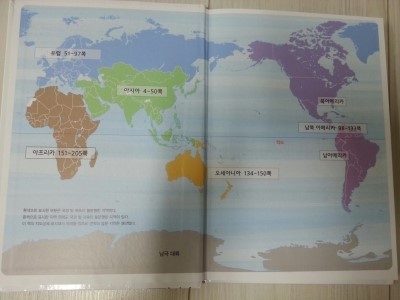 표지를 넘기니.. 세계지도로 각 대륙의 위치를 한눈에 알수있게 되어