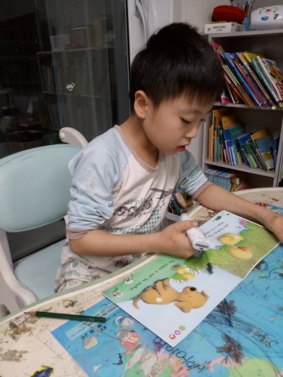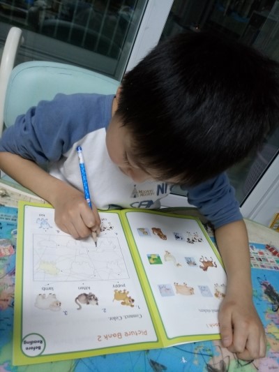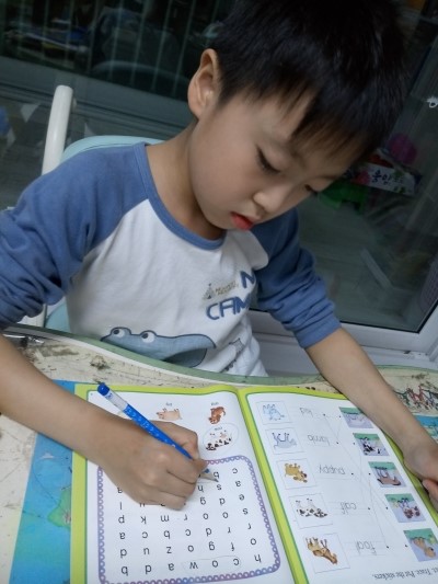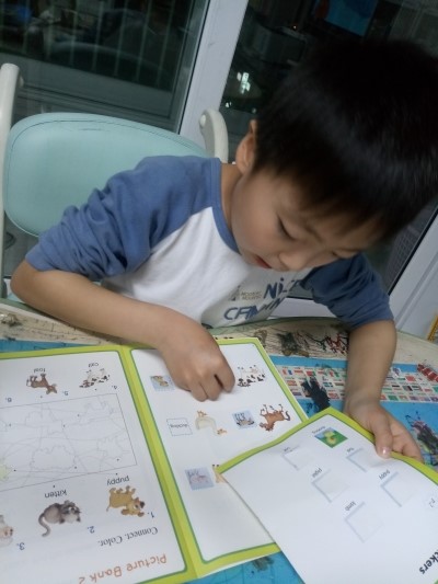 스티커 붙이기, 선긋기, 단어찾기, 문장 따라쓰기.,등등