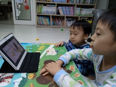 호기심 가득한 눈빛으로 동영상 강의를 들었어요..
