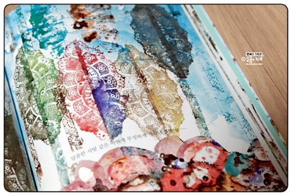 특유의 그림이 물씬 느껴지는 수채 기법에다가 고무 스탬프, 연필을