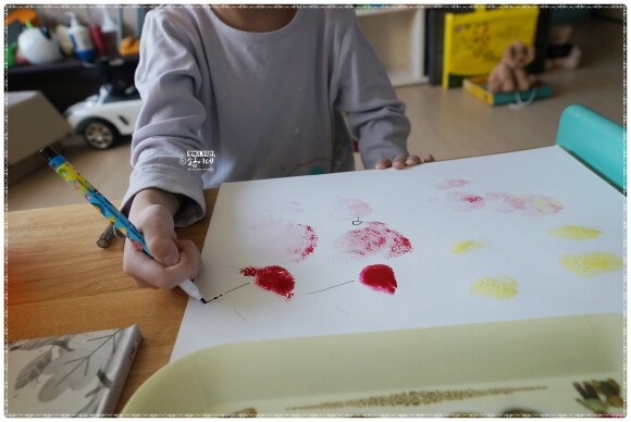 물감을 콕콕 찍는 재밌고 엉뚱한 놀이를 해보았네요 ^^
