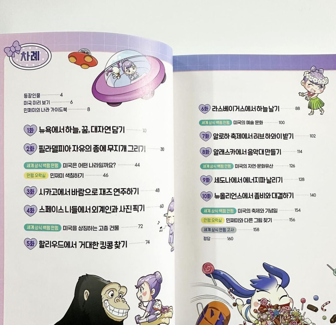 출간 이후부터 아이가 빠지지 않고 보는 #민쩌미세계로쩜프 이번에 헬로 미국 3편이 나왔더라구요 미국 미리보기를 보면서 미국의 굵직한 행사들을 알아보고 , 가이드북으로 먼저 미국에 대해 훑어보고 재미있는 만화로 민쩌미의 눈으로 보는 미국을 대리여행해볼 수 있었답니다 예쁜 쩌미의 포토카드는 초판에서만 한정으로 받을 수 있다하니 빨리 챙기셔야겠죠?