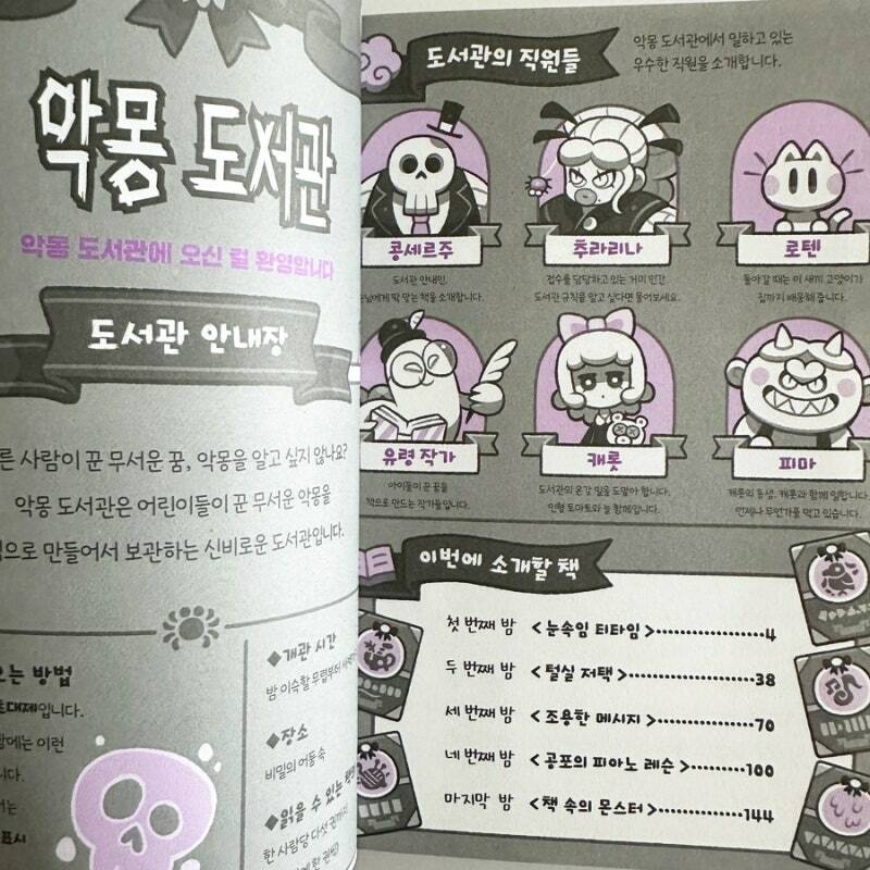 표지가 으스스한 다산어린이의 악몽도서관 내가 직접 꾸는 건 무서워도 다른 친구들이 꾼 악몽을 글로 읽는다면 조금은 덜 무섭지 않을까요? 밤 이슥할 무렵부터 새벽까지 여는 악몽 도서관 책을 펼쳐봤습니다 친절한 악몽 도서관 직원들의 안내에 따라 입장하는 꿈 이야기들. 초등학교 아이들이 읽기 좋은 정도의 무서운 책이라 도전해봐도 좋습니다 나름 무섭고 귀여운 삽화도 준비되어 있구요 9살인 저희 아이는 눈을 떼지 못하고 끝까지 열심히 읽었답니다