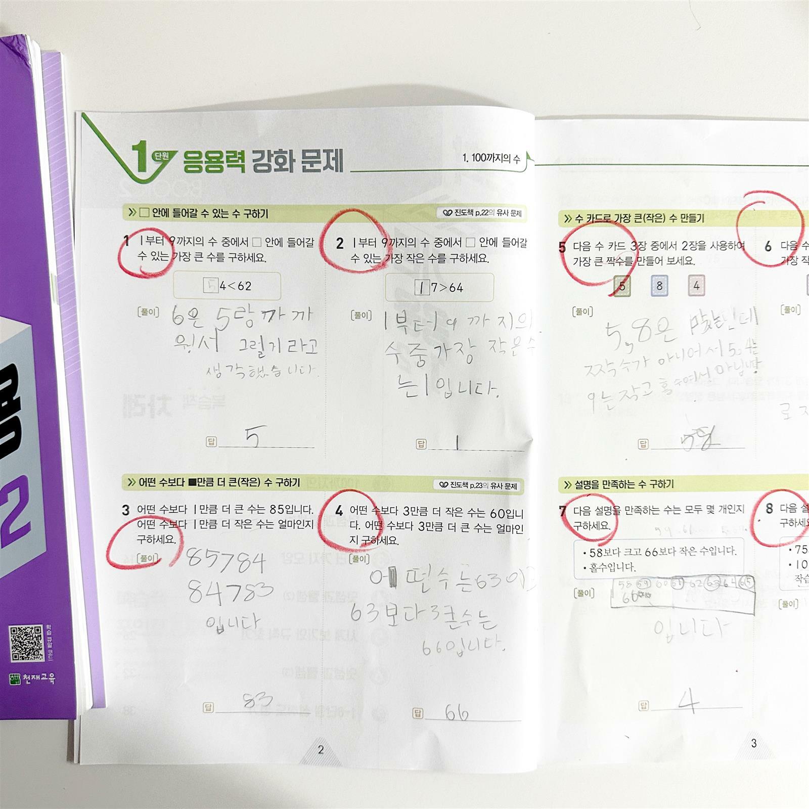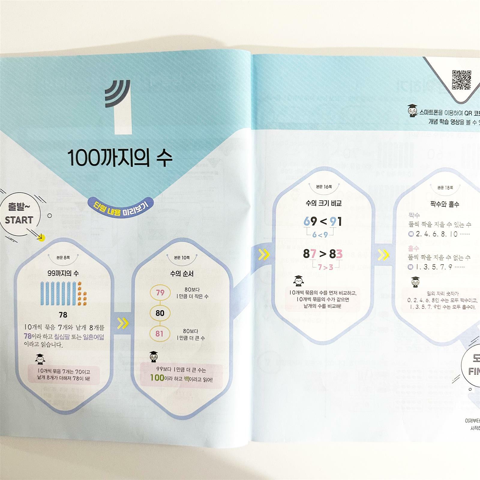 큐브수학 연산 초등 1-2 성취도 그래프에 스티커를 붙일 수 있게 되어 있어서 아이가 더 열심히 진도나가게 동기부여를 해주시네요 연산 책이지만 연산 문제만 있는 게 아니라 아이에게 여러 가지 모양, 도형들에 대해서도 공부할 수 있어서 좋았습니다 ?아이가 지루해하거나 내 말에도 이해가 안되는 것 같을 때 참고할 수 있게 듣는 무료 동영상 강의도 동아출판 교재들만의 장점이라고 생각해요
