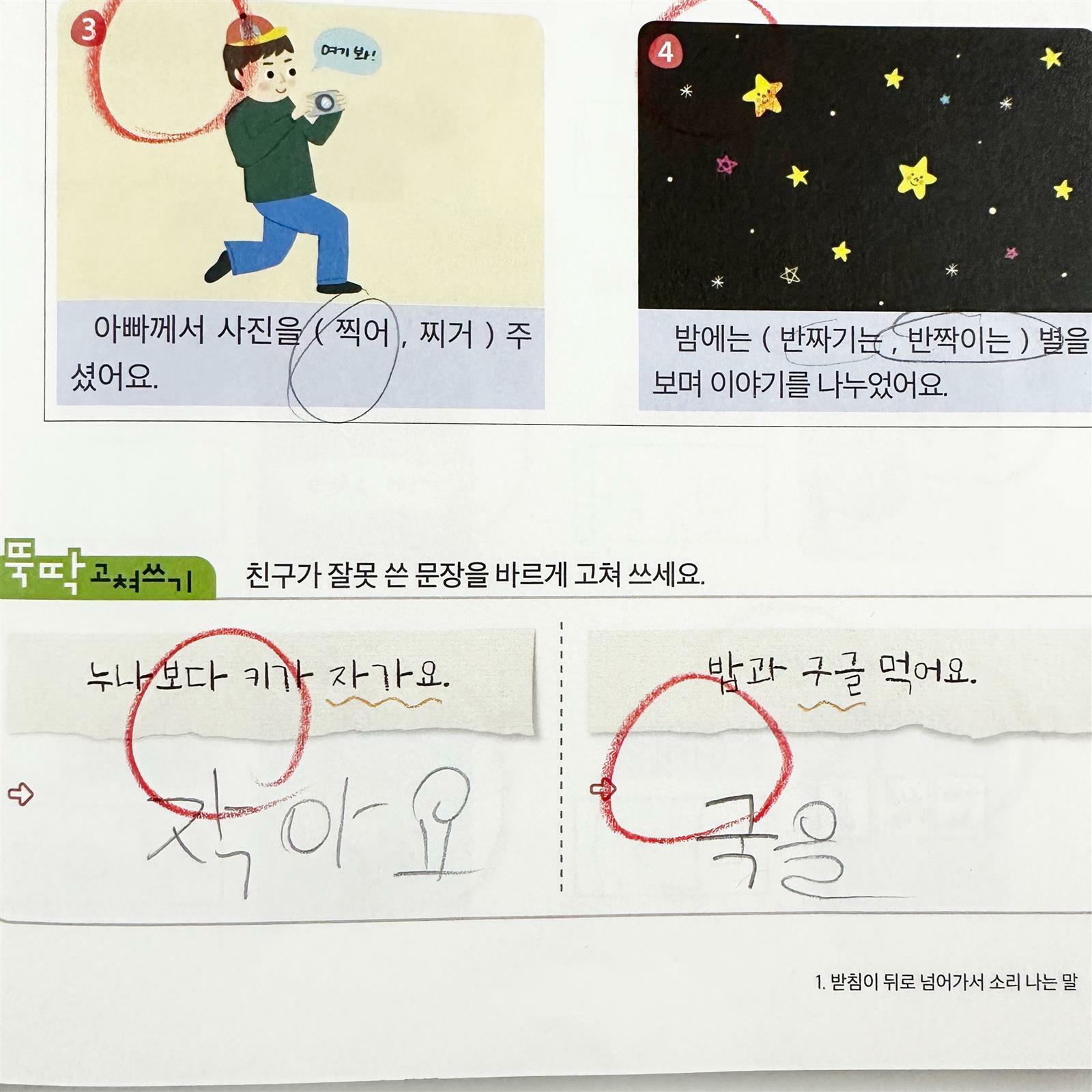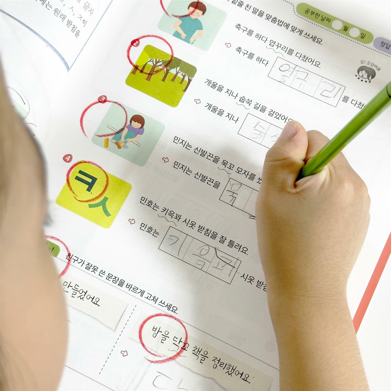 50일 계획표에 열심히 체크하며 진도나가고 있어요 아직 1학기 때 학교에서 받아쓰기를 하지 않아서 2학기에 할 것같아서 미리 준비했습니다 배울 내용을 미리 그림으로 확인해보고 보통 어떻게 틀리는지 알아볼 수 있었어요 그림으로 낱말을 확인하고 소리내어 읽어보고 실제로는 이렇게 써야 맞는 단어라는 걸 차근차근 아이와 공부해보는 시간을 가질 수 있었답니다