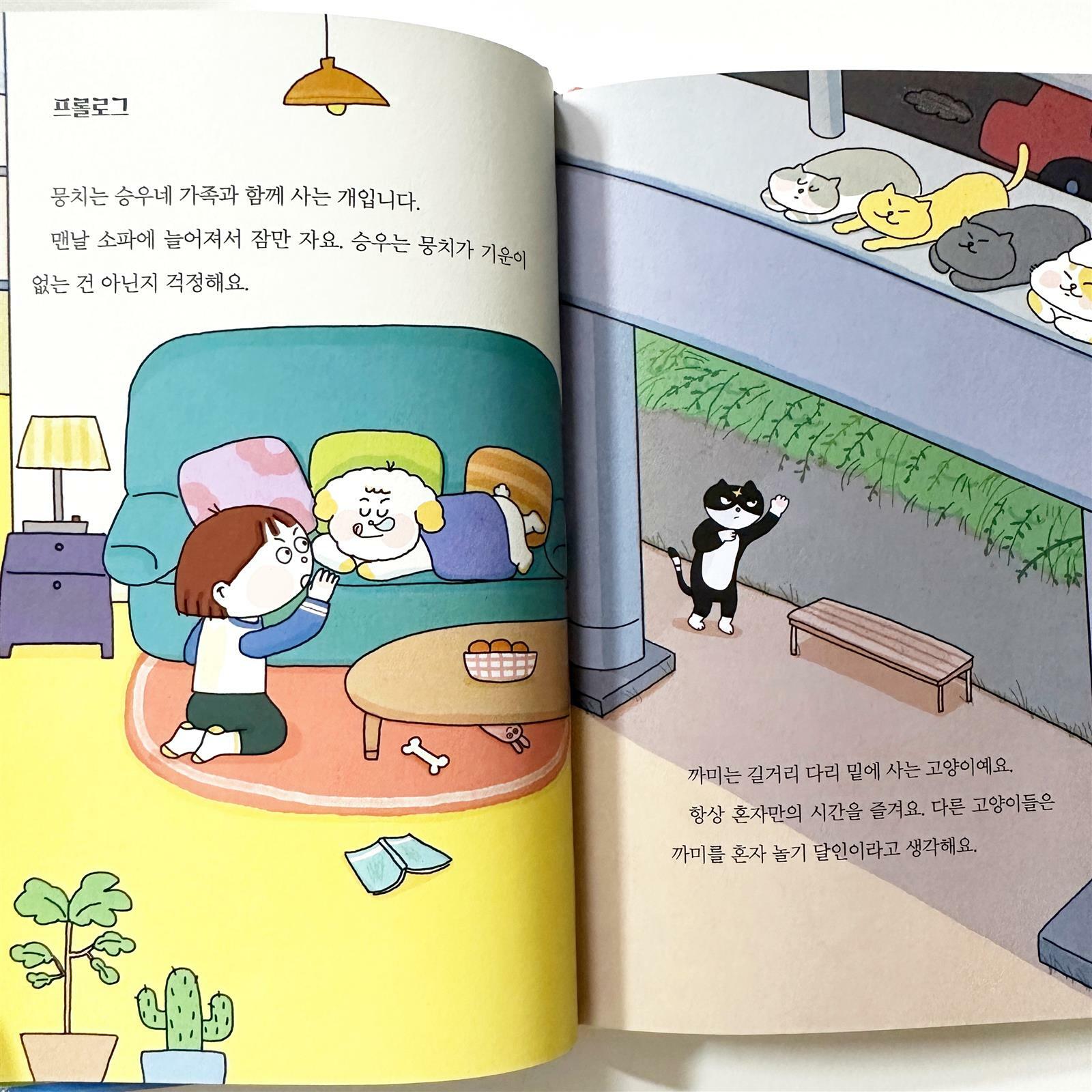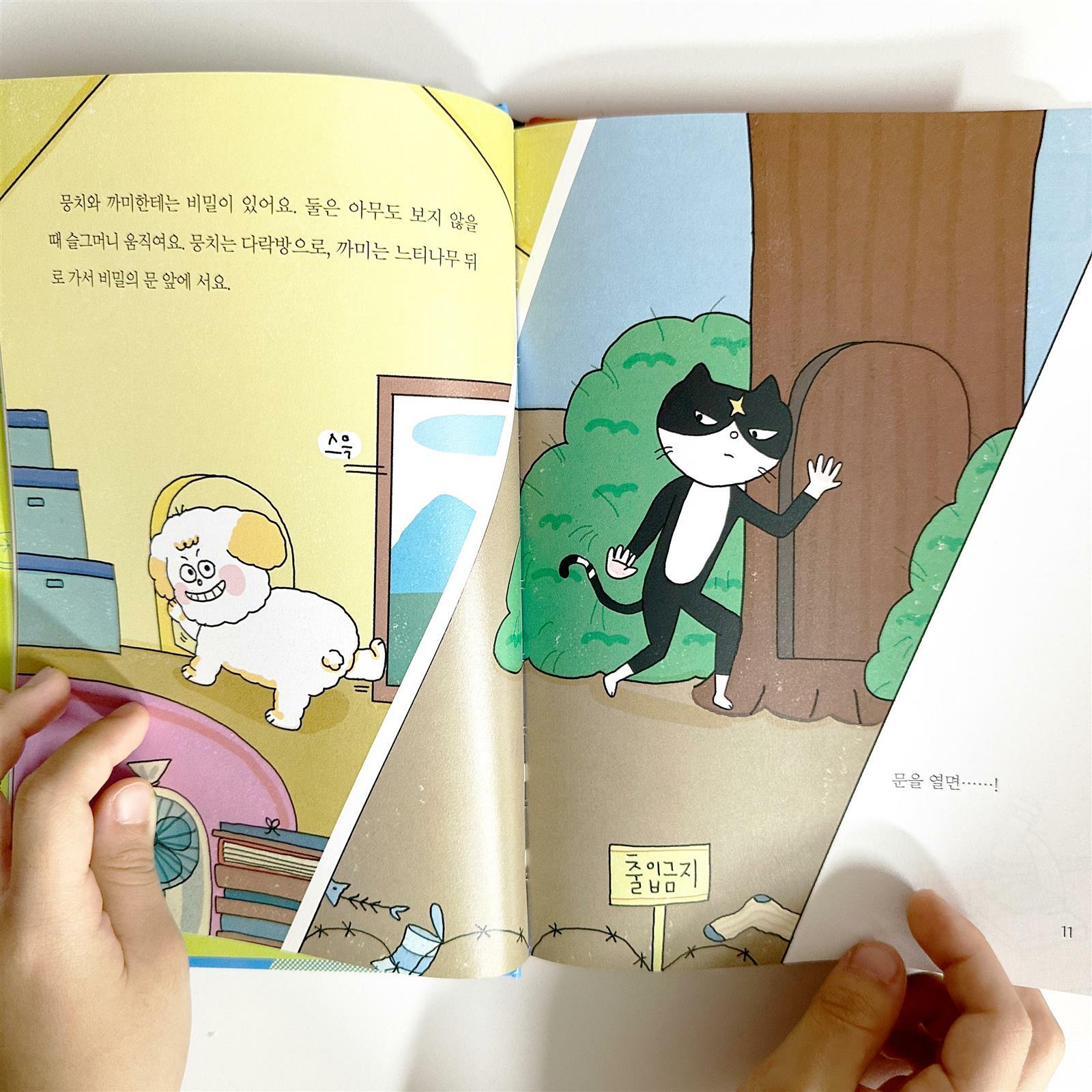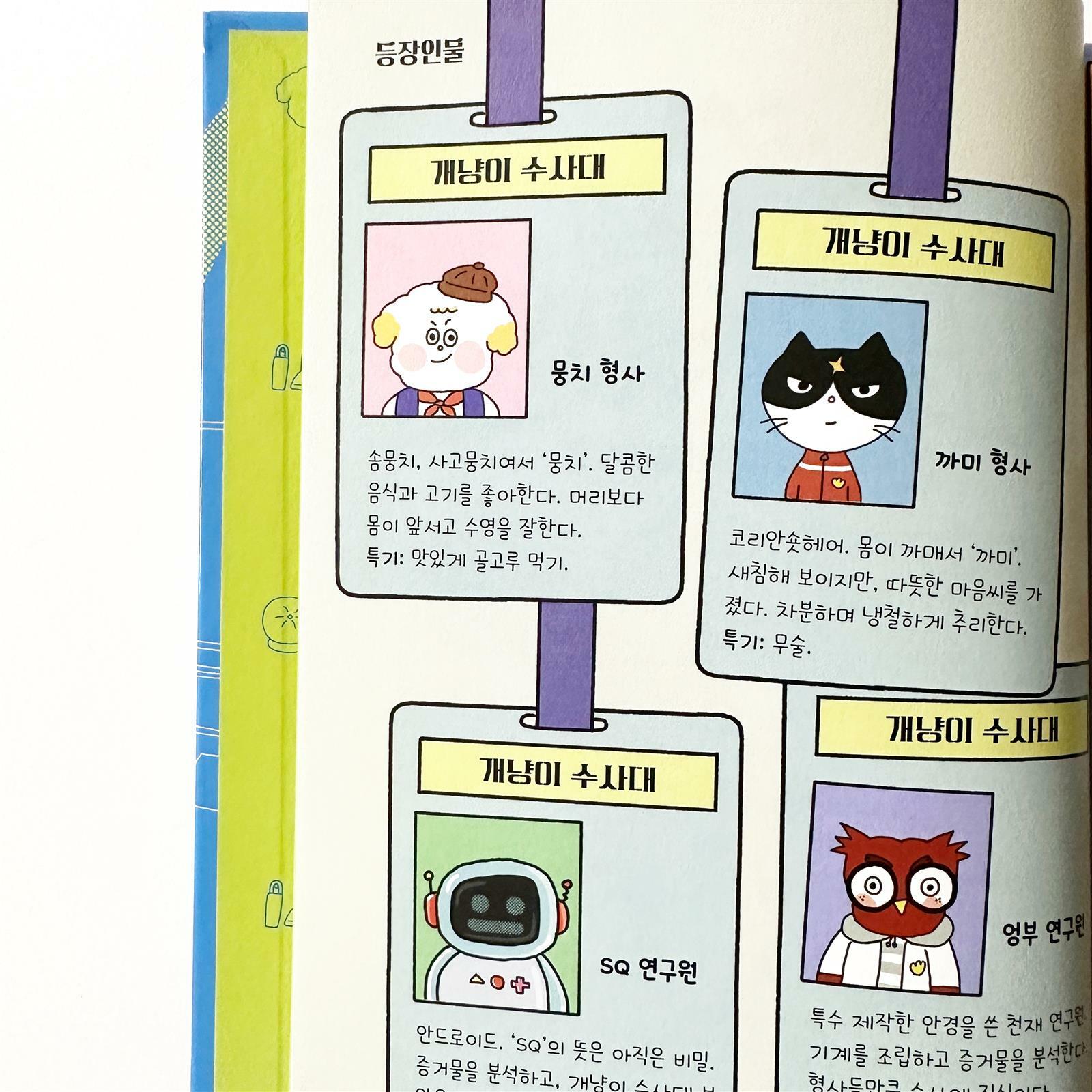 위즈덤하우스의 천하무적개냥이수사대 시즌2 1권 슈퍼 꿀맛 복숭아 도난사건 을 읽어봤어요 이승민 작가님의 다른 책들도 재밌게 봐서 이 책 역시 기대되었답니다 천하무적개냥이수사대는 이번이 처음이라 시즌1 을 다 읽어야하나 하고 걱정했는데, 새로운 시즌이다보니 괜찮더라구요 개 뭉치 와 냥이 까미, SQ연구원과 엉부 연구원과 함께 없어진 슈퍼 꿀맛 복숭아 상자들을 조사하기 시작했어요 개와 고양이의 장점을 활용한 수사! 딱딱하지 않게 그림과 글이 적절히 섞여 아이가 보기 좋은 책이에요