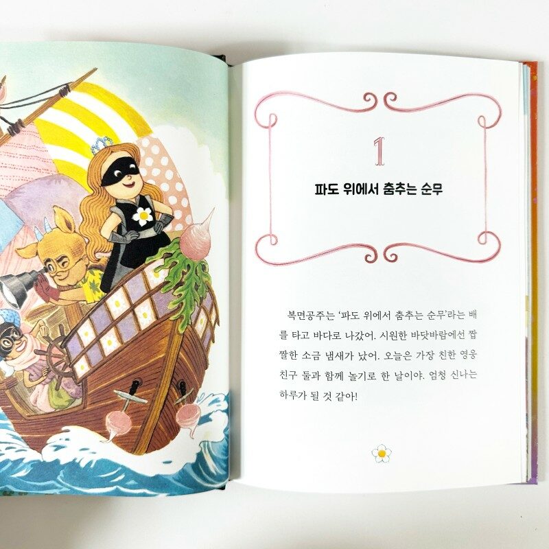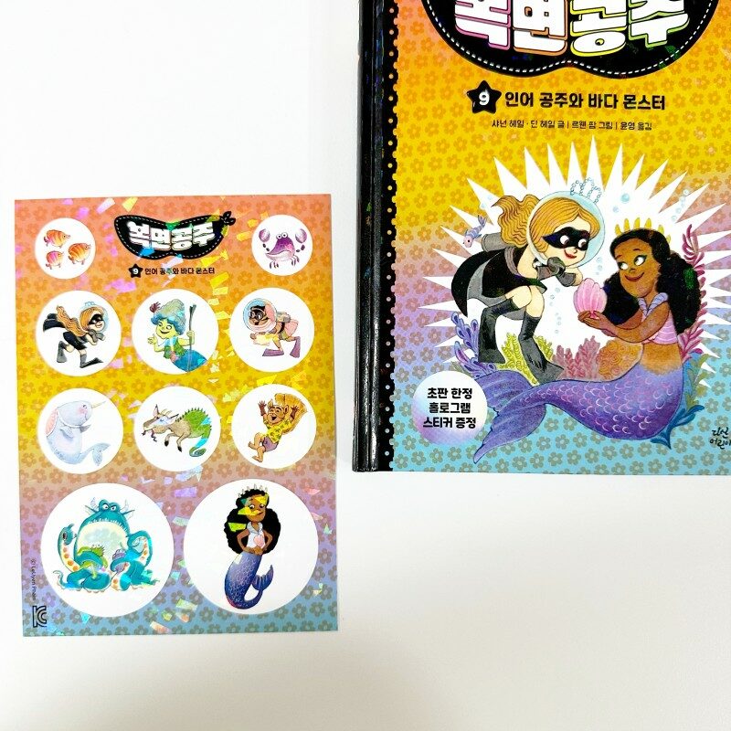 다산어린이의 복면공주 9권이 출간되었어요 복면공주는 , 첫 권이 출간되자마자 미국 서평 잡지 「커커스리뷰」의 ‘올해 최고의 책’으로 선정될 만큼 화제를 불러일으킬만큼 사랑받는 책이에요 작년에 윤이와 4권 읽었었는데 언제 이렇게 많이 나온거죠? 복면공주와 친구들이 바다로 놀러나가 인어공주(산호)를 만나요 친절한 사람이 되는 비결 , 좋은 공주가 되는 비결이 뭐라고 생각하나요? 씩씩한 공주들과 바다몬스터와 싸워 이겨봐요 ꕀ 𖠳