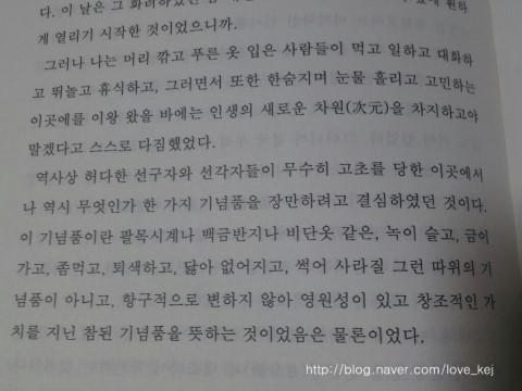 또 자신들이 왜 붙잡혀왔는지, 어떤 처벌을 받게 될지도 정확히 알 수 없는 불안한 상황에서 다 같이 모여 모의재판(p.56)을 하던 모습은 웃기기도 하면서 얼마나 자신의 신념과 행동에 자신이 있으면 저렇게 여유를 잃지 않을 수 있나, 라는 생각이 들어 존경스럽기까지 했다. - 이는 지금 생각해보면 저자의 특유의 발랄한 문체 때문이라는 생각도 든다. 옥중 수기치고는 굉장히 유머러스한 내용과 말투가 많이 쓰여 있었는데, 그 중 하나가 이 모의재판 에피소드가 아닐까 싶다.