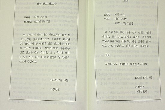 책 맨 뒤에 수록된 실종 신고 최고장과 판결문. 소설의 결말을 갈음하는 또 하나의 방식.