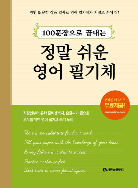 책은 쓰기 연습과 더불어 손글씨를 통해 영어 학습과 자기 표현 능력을 동시에 향상시키는 실용서이다. 하루 10분, 문장 한 줄을 쓰는 시간을 통해 학습자는 글씨의 흐름과 언어의 리듬을 체험하고, 나아가 영어 문장 구조와 문학적 감수성을 자연스럽게 익힐 수 있다. 직장인, 학생, 유학 준비생 등 영어 필기체가 필요한 모든 사람에게, 책은 가장 친절하고 실용적인 안내서이며, 손글씨를 사랑하는 모든 학습자에게 적합한 동반자이다.