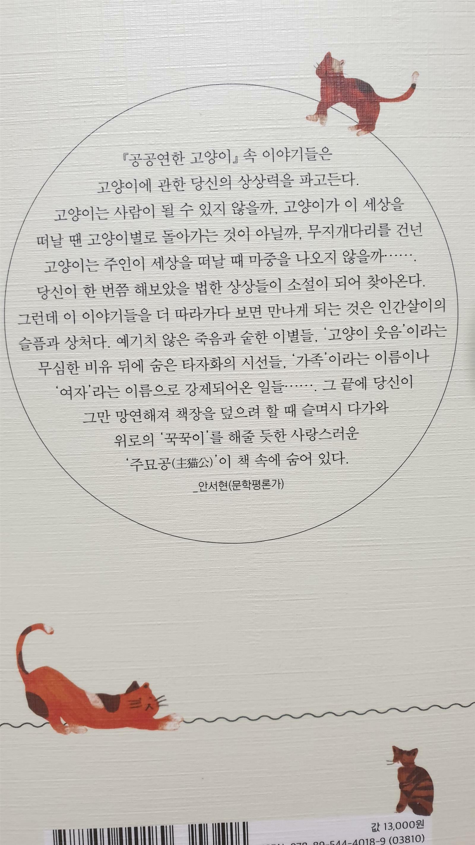 두 작가가 참여한 것만 해도 주목할 일이라고 생각했는데, 심지어 고양이를 소재로 한 단편집이란다. 200페이지 남짓한 작은 책 한 권에 참여한 작가는 무려 열 명. 작품도 열 편이다. 그런데 이 모든 작품에는 고양이가 등장한다.
