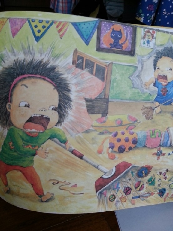 "난 3마리. 다른 애들은 2개씩 먹을거야, 뾰족아."