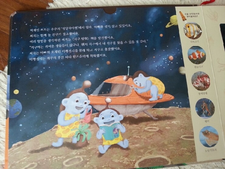 외계인 써치가 지구탐험 책을 발견하면서 여러가지의 지구에 사는 동물들을 보게되는데