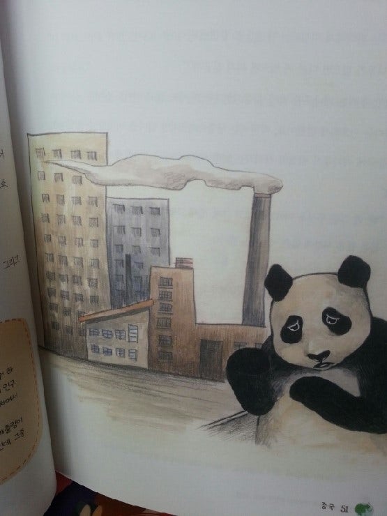 대나무숲을 없애고 공장이나 아파트를 지어서 동물들도 살수가없으니 동물원으로 이사가고있어서 점점 대나무가 없어지고 판다곰도 살지못하고 환경오염되어 이산화탄소만 가득차게 되는걸 무척 안타까워하네요.